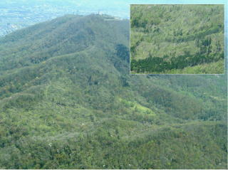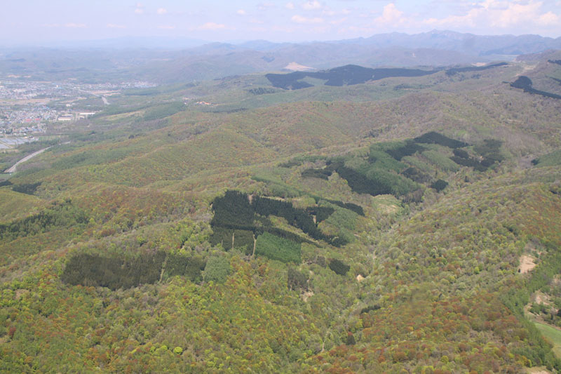 光珠内実験林は、周辺の森林と比べ様々な樹種が存在することがわかります。 (菅野さん撮影) |