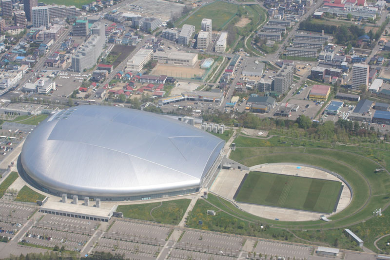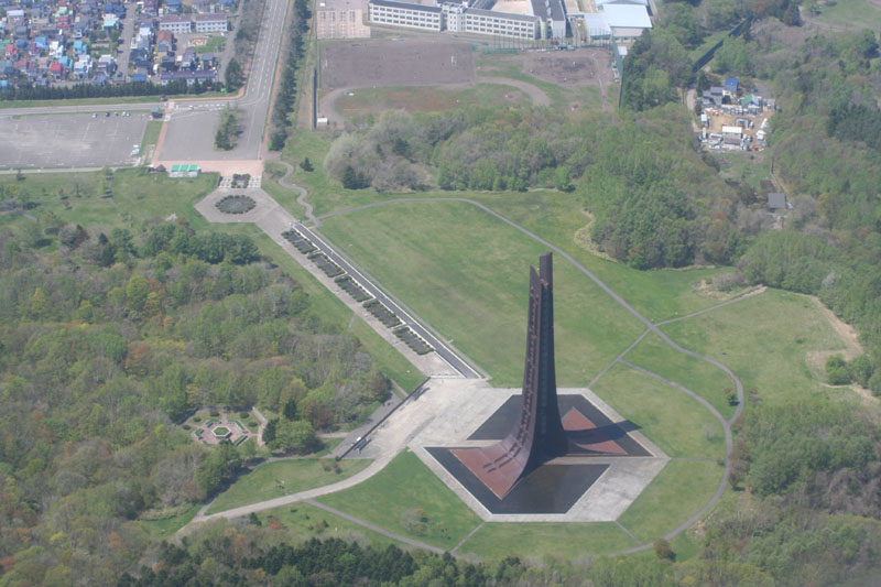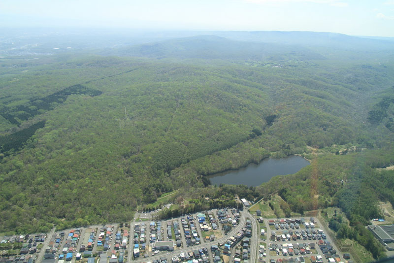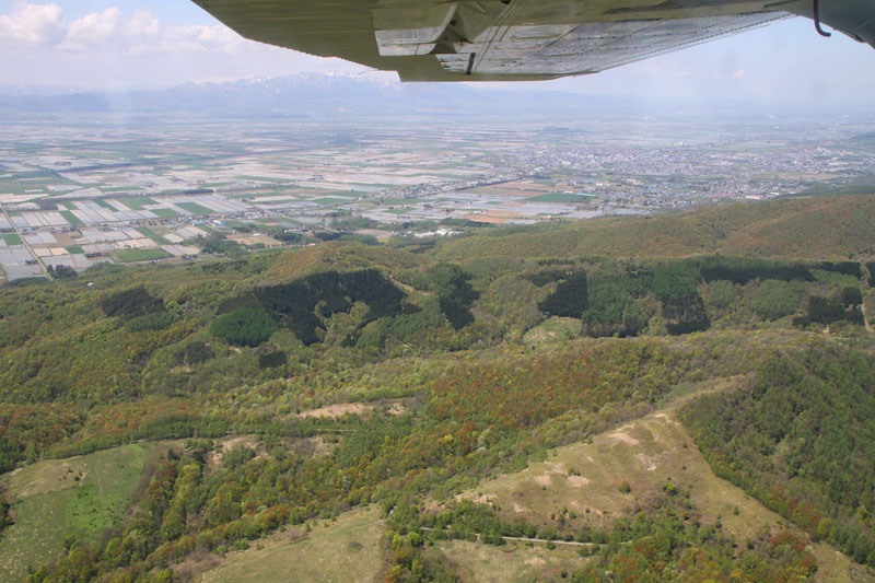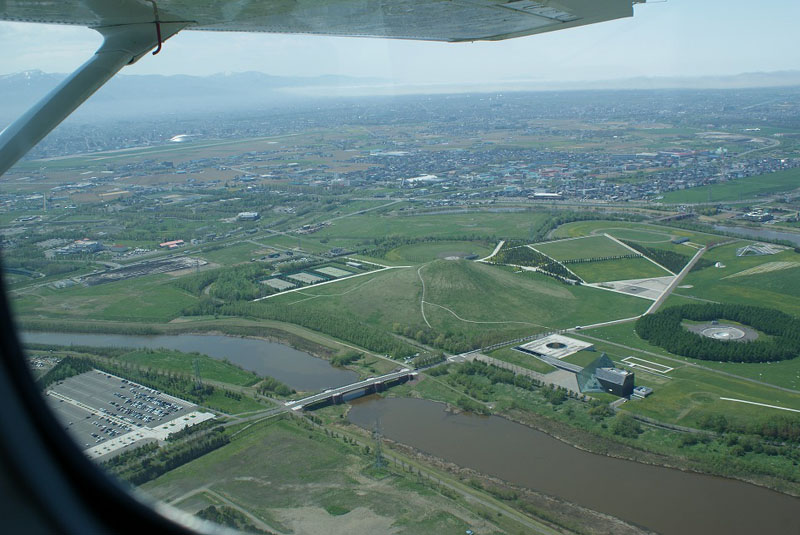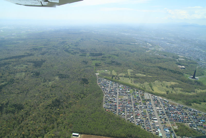 野幌森林公園の広大さが上空から良くわかります。 (井上さん撮影) |