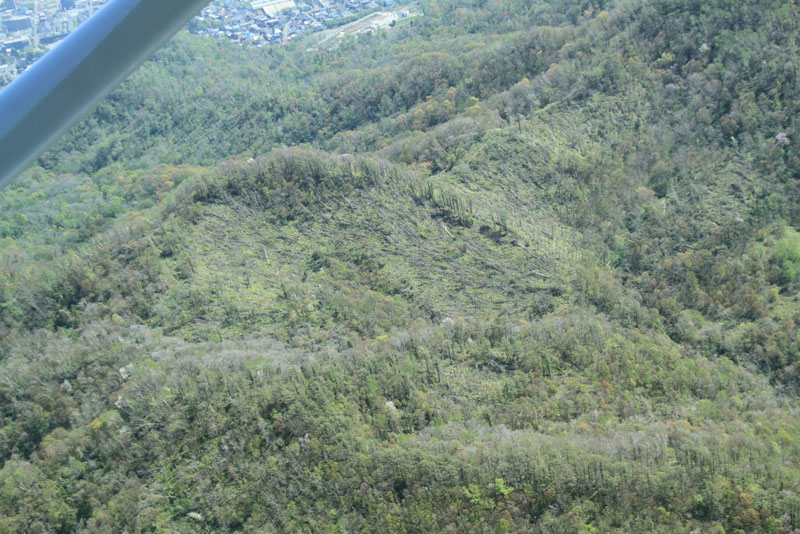 藻岩山の風倒木の現在の状態です。2004年9月の台風による倒木が今も見られます。 (渡辺さん撮影) |
