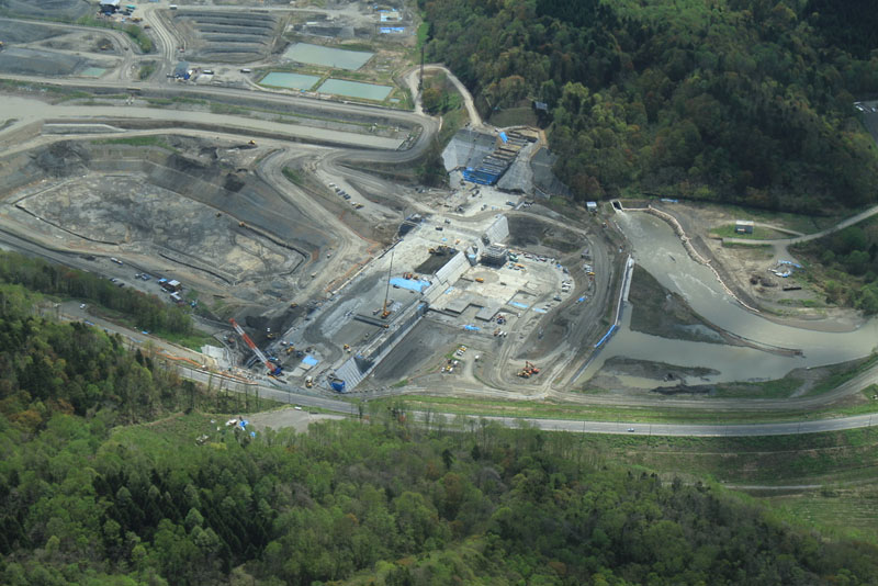 当別ダムは建設中です。ダム建設地点や周辺で得られる砂や砂利にセメントと水を混ぜ合わせた材料を使う大変珍しい工法です。 (齋藤さん撮影) |